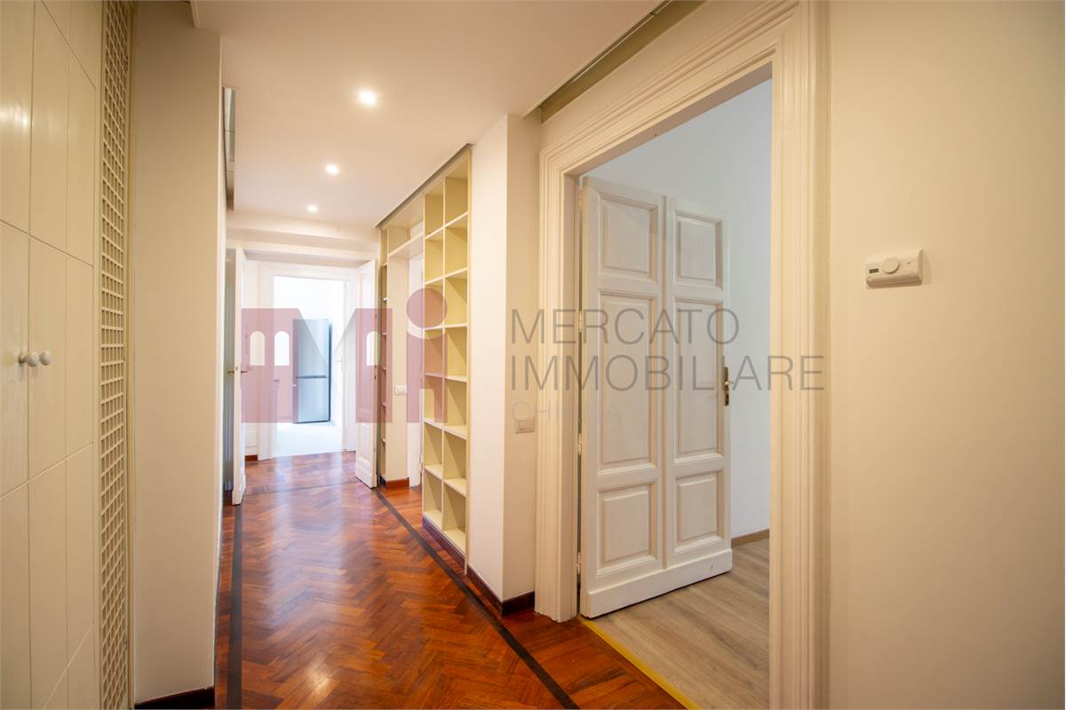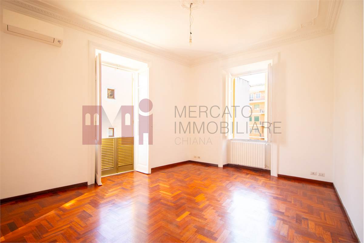 In the Trieste neighborhood, overlooking Villa Paganini and just a few steps from Villa Torlonia, we offer for rent a spacious and bright four-room apartment located on the second floor of an elegant period building with full-day concierge service. The apartment, in excellent internal condition, consists of an entrance hall, four rooms, a kitchen, three bathrooms, and three small balconies, and benefits from dual exposure, both internal and external. The finishes include parquet flooring, wooden window frames, independent heating, air conditioning in every room, and a fully equipped kitchen with new appliances. Parking is available in the inner courtyard. NOT AVAILABLE FOR STUDENTS.