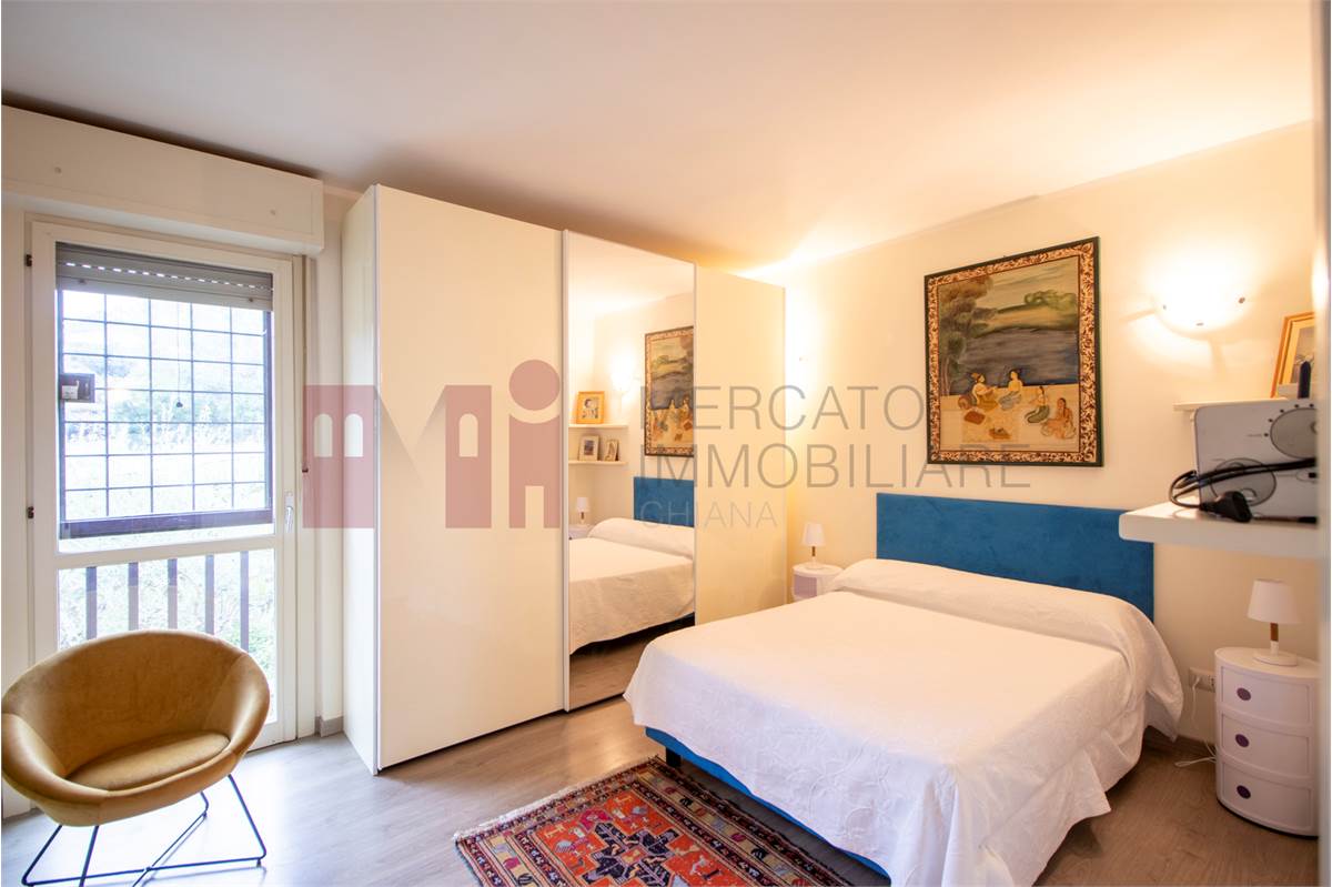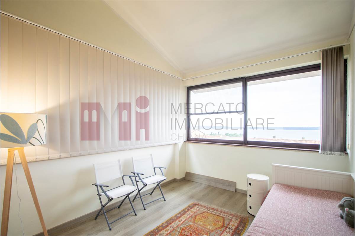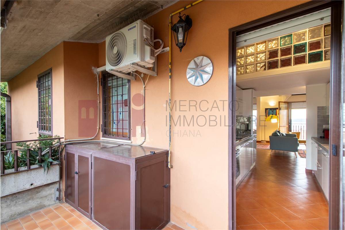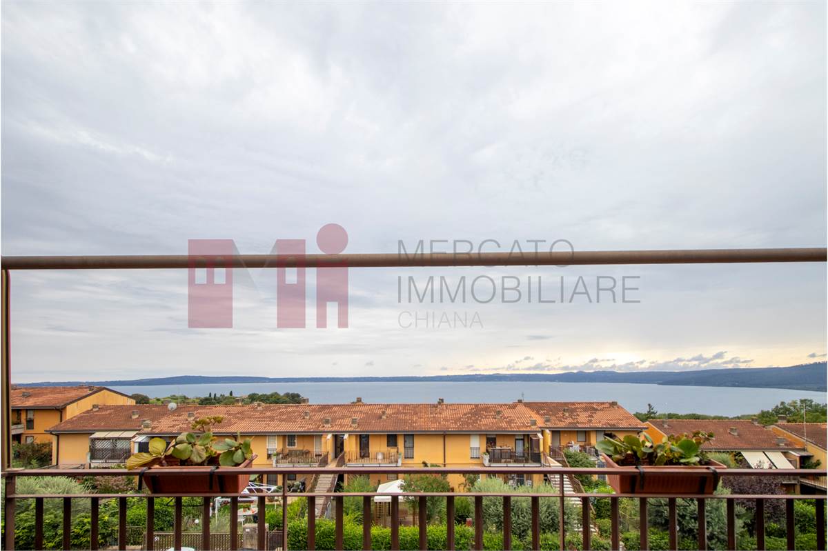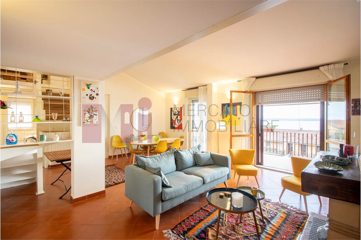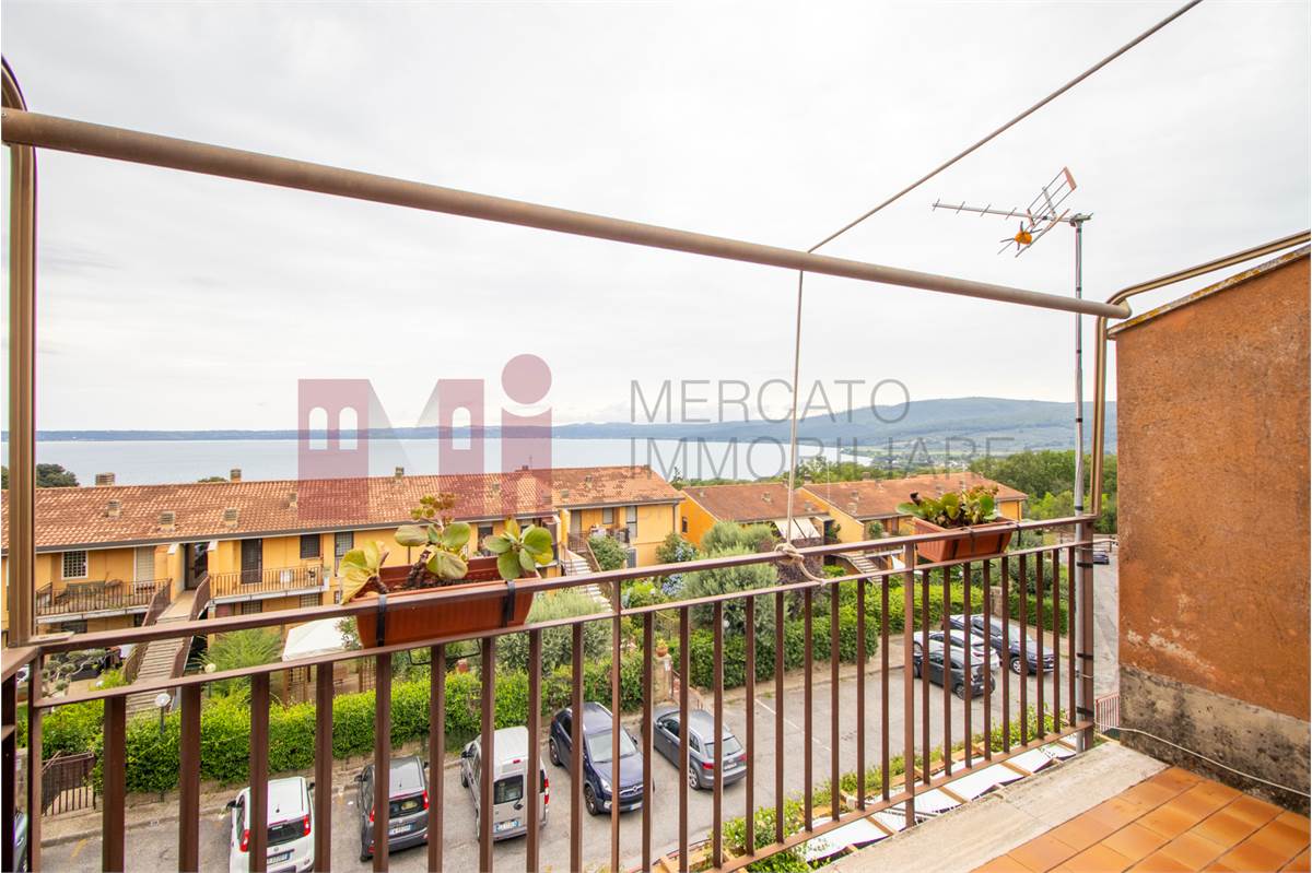 Just a few steps from Lake Bracciano, we offer for sale a spacious and bright apartment located on the second and top floor of a small building. The property is in good internal condition and consists of a large living room with fireplace, kitchenette, two bedrooms, a convenient mezzanine, two bathrooms, and two balconies, one of which boasts a panoramic view directly over the lake. Interior finishes include terracotta, parquet, and porcelain stoneware flooring, air conditioning, independent heating, security grilles, sun awnings, and a reinforced security door. The property is completed by a large cellar and a convenient private garage.