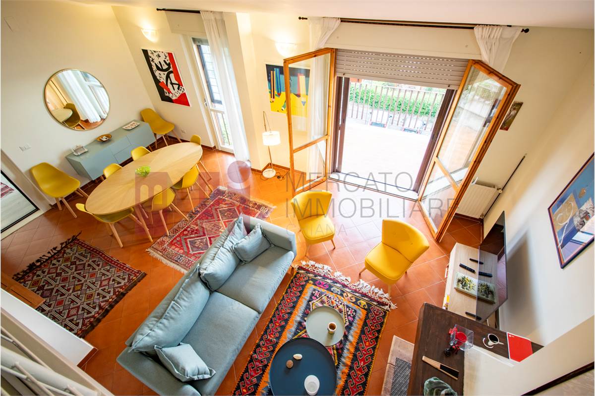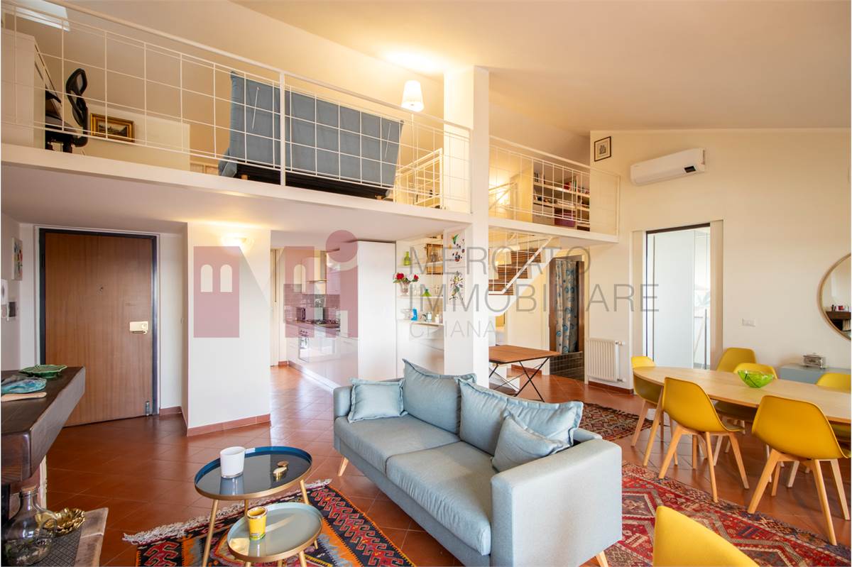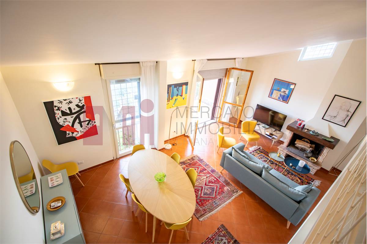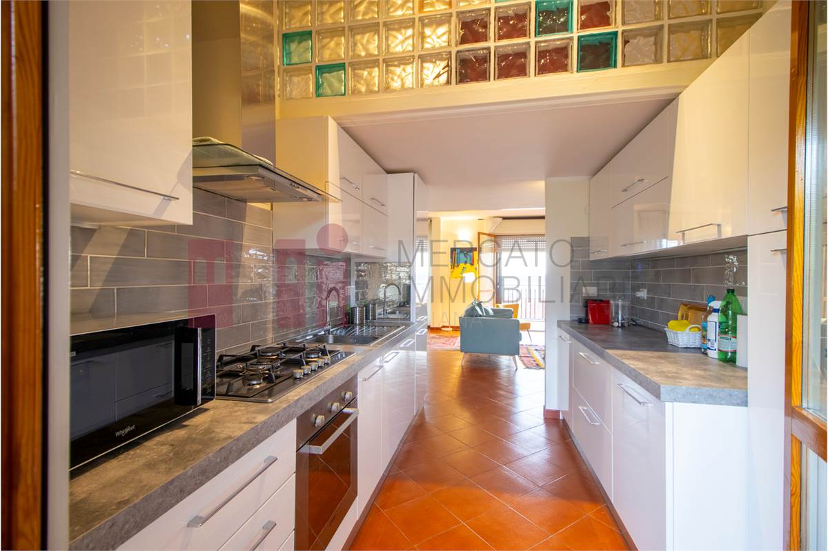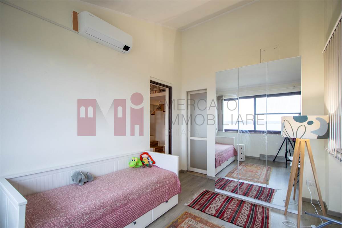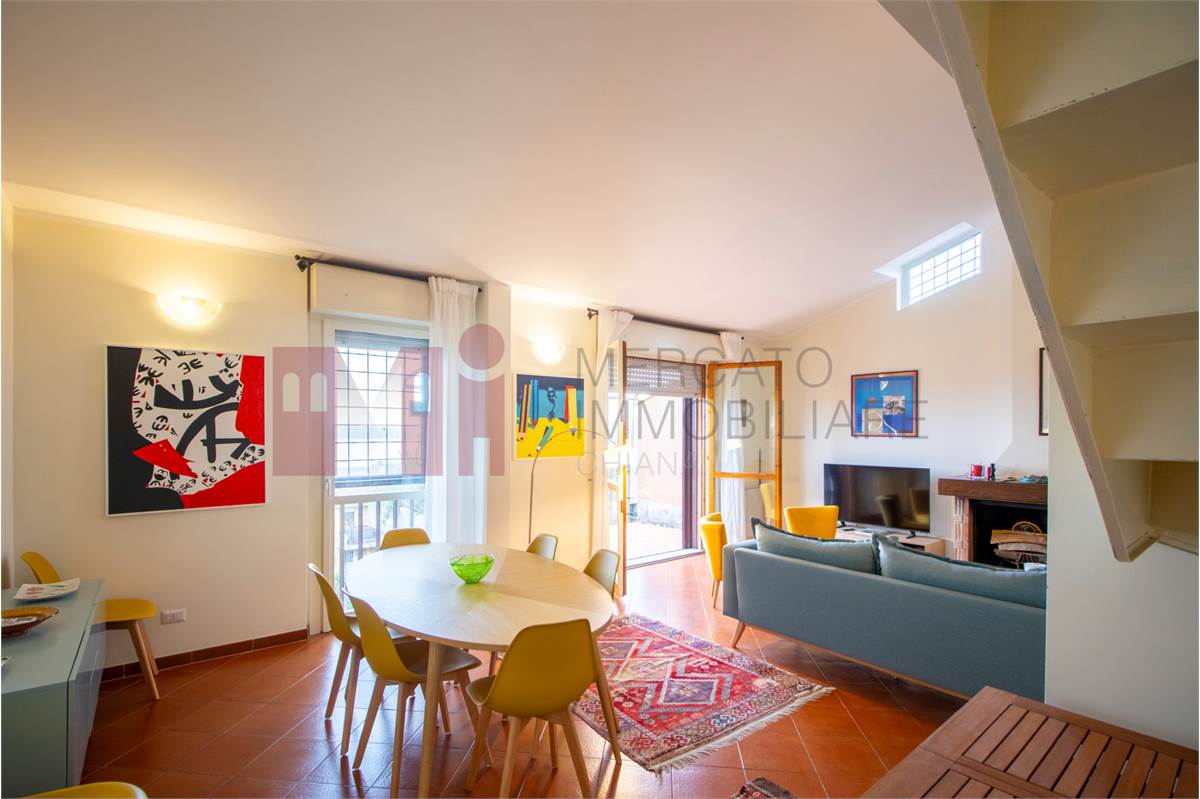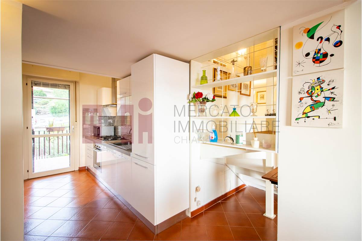 Just a few steps from Lake Bracciano, we offer for sale a spacious and bright apartment located on the second and top floor of a small building. The property is in good internal condition and consists of a large living room with fireplace, kitchenette, two bedrooms, a convenient mezzanine, two bathrooms, and two balconies, one of which boasts a panoramic view directly over the lake. Interior finishes include terracotta, parquet, and porcelain stoneware flooring, air conditioning, independent heating, security grilles, sun awnings, and a reinforced security door. The property is completed by a large cellar and a convenient private garage.